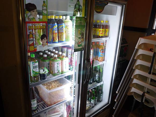 除了一般的熱茶之外,冰箱裡也有各式飲料跟酒類